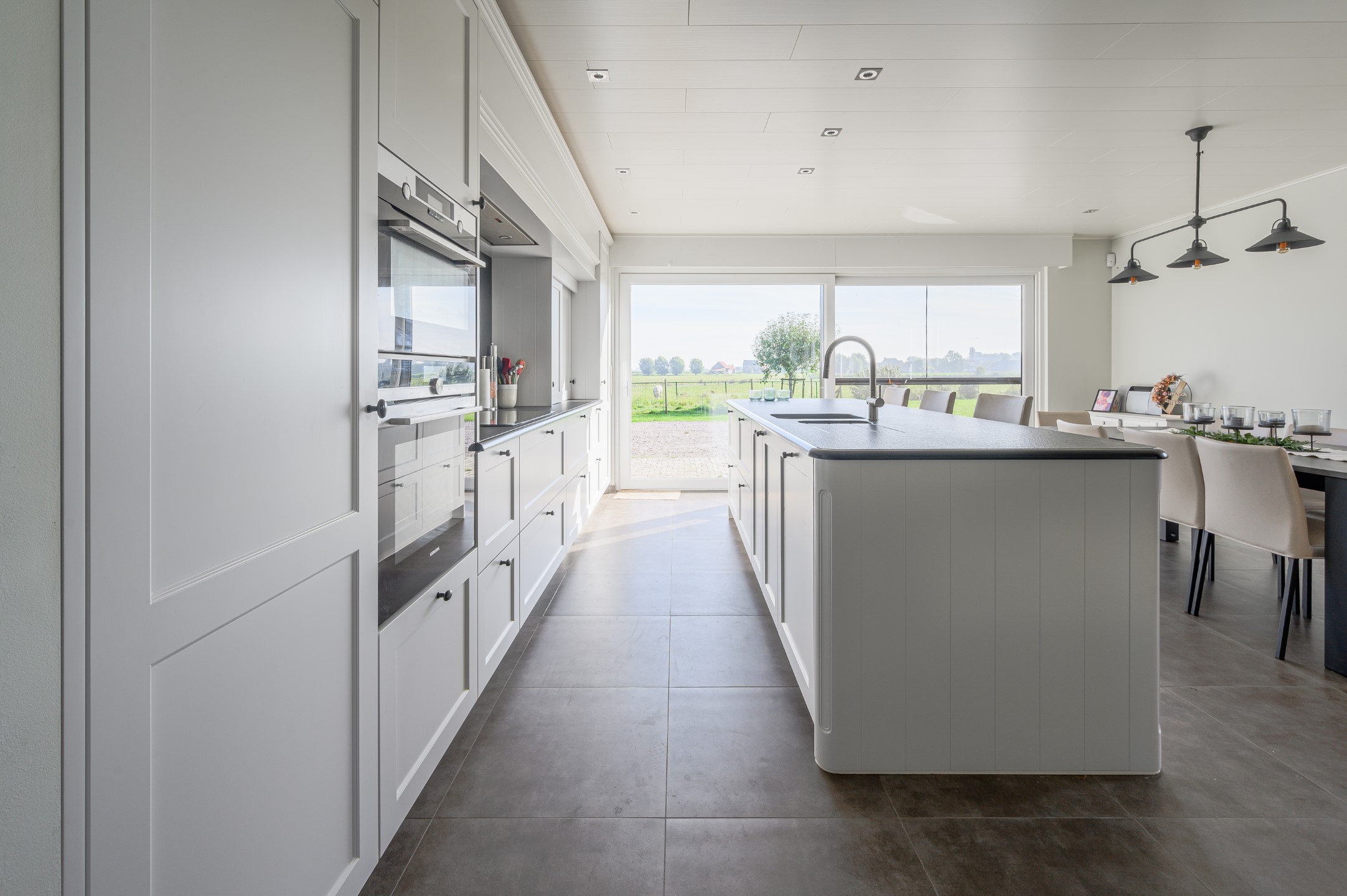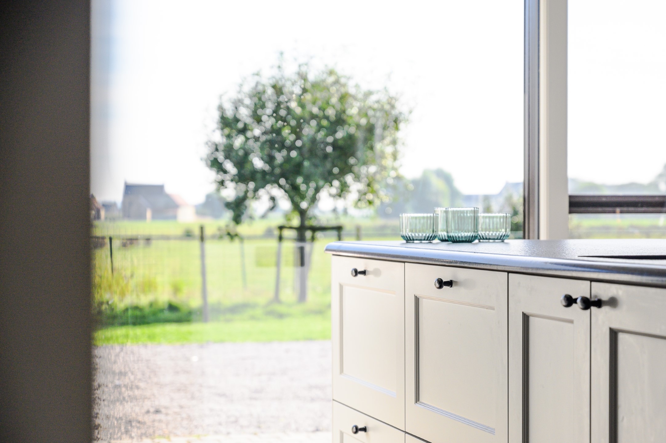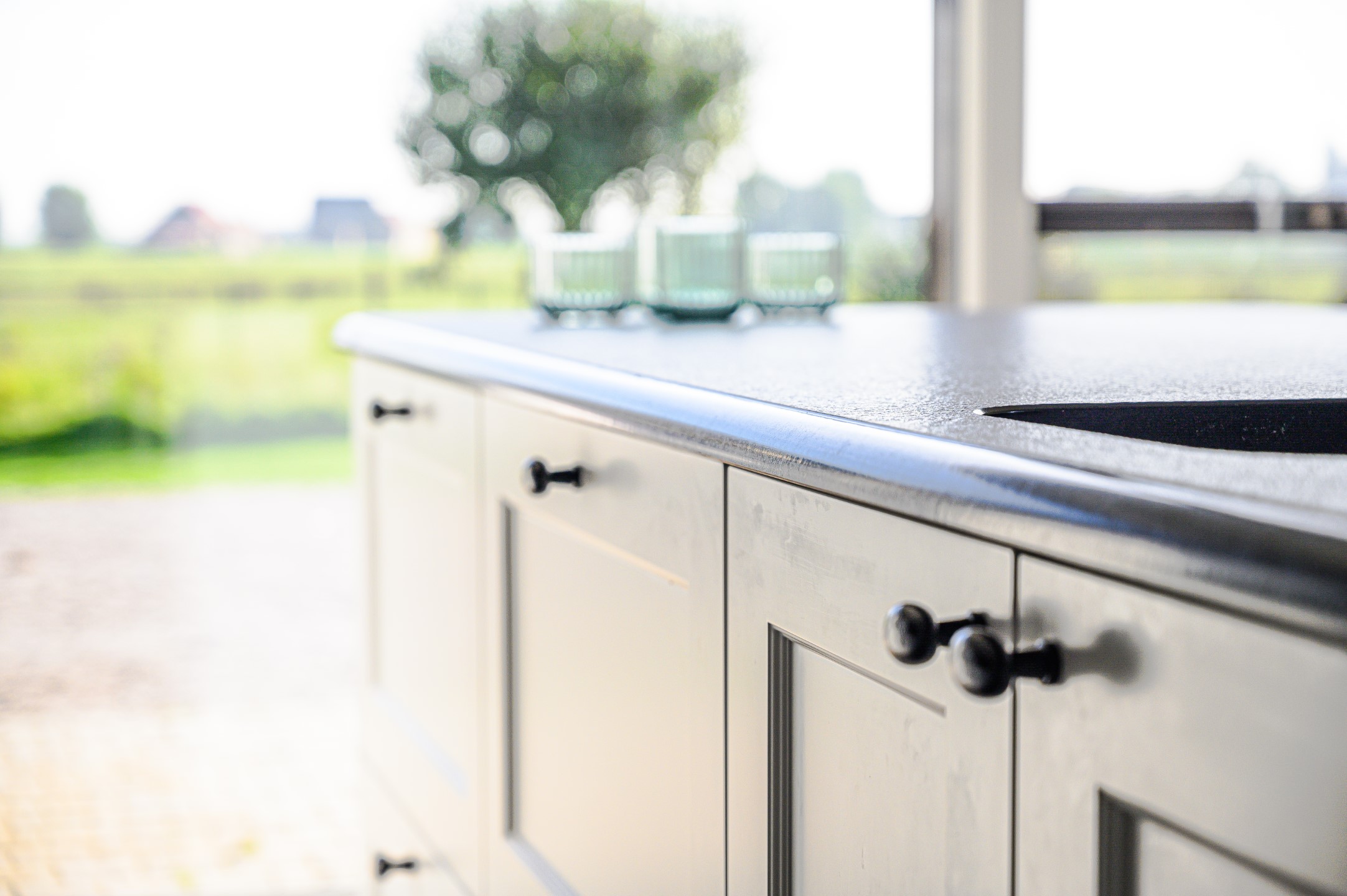 Ontdek de verfijning van donkerkleurig graniet in de landelijke keukenrealisatie van Wackenier Natuursteen voor een klant in Diksmuide.