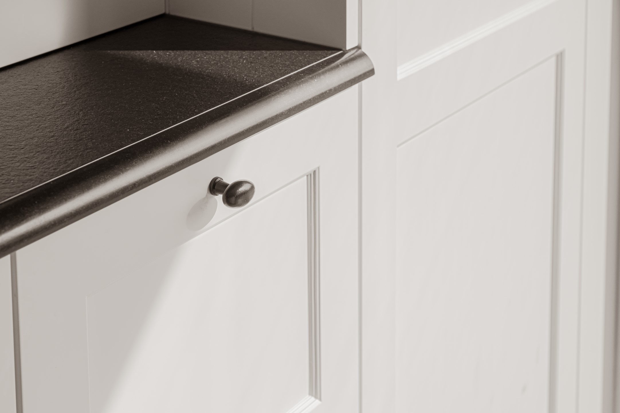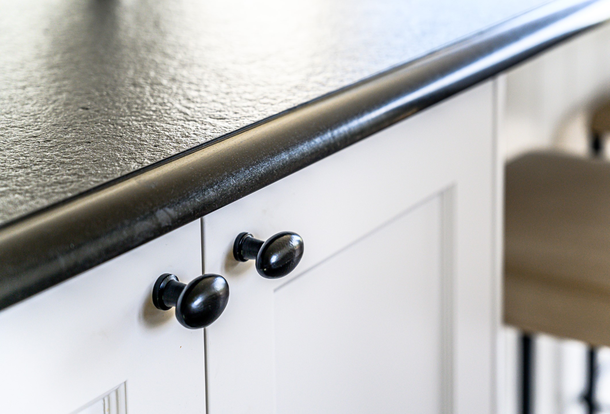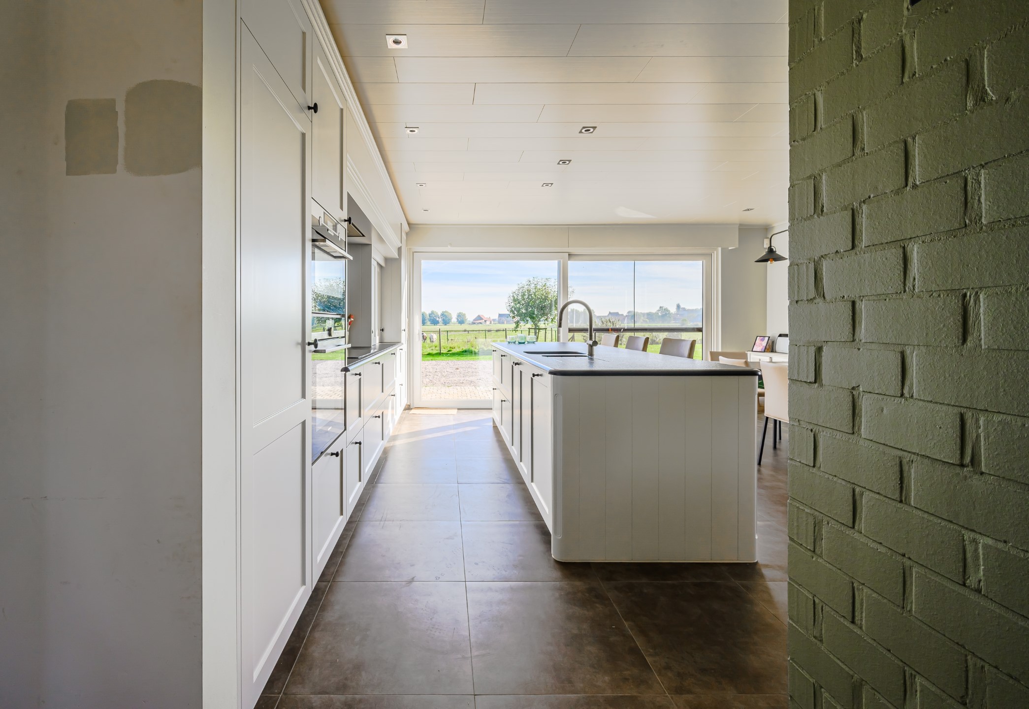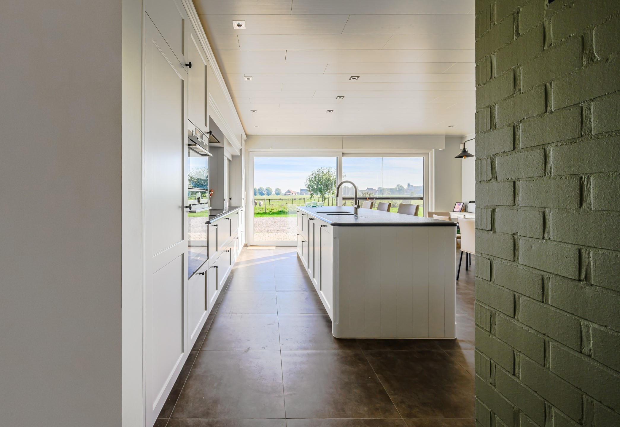 Ontdek de verfijning van donkerkleurig graniet in de landelijke keukenrealisatie van Wackenier Natuursteen voor een klant in Diksmuide.